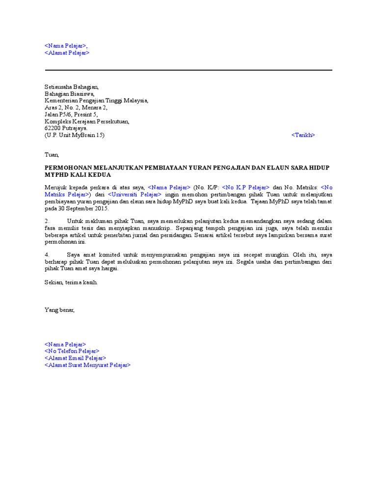 Contoh Surat Rasmi Permohonan Pelanjutan Biasiswa Jpa Nanikalux